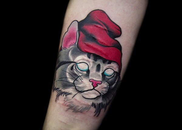Тату кошка значение может иметь далеко не всегда позитивные. Поэтому выбирать эскиз нужно крайне осторожно. Например, не рекомендуется накалывать на тело кота в шляпе. Такая наколка – выбор воров.