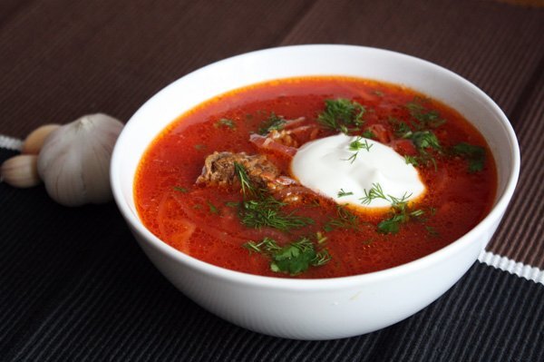 Этот борщ просто обожает мой муж! Настоящий борщ лучше варить из свиных ребрышек или любой другой части свинины на кости. Отвариваем мясо почти до готовности с лавровым листом и пол ложки соли, (примерно около часа) . Весь секрет в приготовлении красной свеклы. Я не люблю когда борщ отдает сырой свеклой. И на мой взгляд настоящий борщ должен быть,насыщенным,