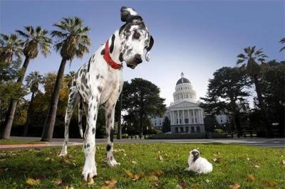 По версии Книги рекордов, титул «Самая большая собака в мире» заслуживают доги – длинноногие статные красавцы с выразительным взглядом и лоснящимися боками. Самыми тяжелыми псами считаются английские и тибетские мастифы, но в росте эти породы уступают датским и немецким догам. Представляем тройку абсолютных чемпионов! III место Гибсон из Калифорнии, мраморный датский дог. Рост 108,2 см в холке и 2 м 13 см стоя на задних лапах. Рубаха-парень и друг всех детей – так говорила о своем любимце его хозяйка, Сенди Холл. Гибсон почти никогда не лаял, не дергал поводок на прогулке и был деликатен в общении с другими, даже самыми маленькими собачками. Он был послушным, целовальным и ласковым псом, которого близко знали и совсем не боялись друзья Сенди. Что неудивительно, ведь хозяйка – опытная заводчица и отличный зоопсихолог. II место Джордж из Аризоны: вес 111 кг, рост в холке 105 см, стоя на задних лапах – 2 м 21 см! В 2011 году приемником Гибсона стал еще один дог – голубой красавец