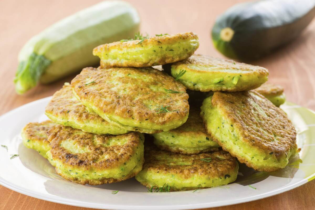 ЭНЕРГЕТИЧЕСКАЯ ЦЕННОСТЬ НА ПОРЦИЮ Ингредиенты: Молодые кабачки - 1 штука Укроп Чеснок - 1 зубчик Пшеничная мука - 3 столовые ложки Яйцо куриное - 3 штуки Перец черный молотый по вкусу Соль по вкусу Растительное масло - 70 мл - Общее время приготовления: 20 минут - Сложность: ЛЕГКАЯ Приготовление: