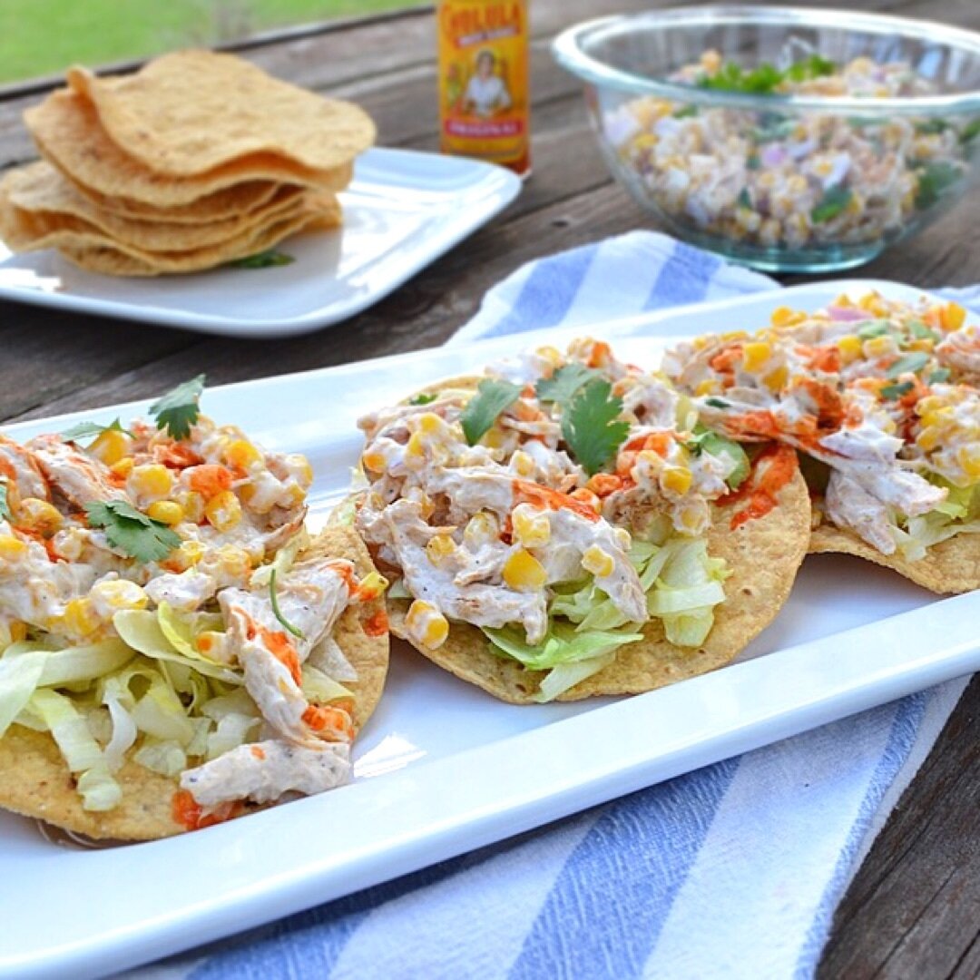Холодный рецепт, идеально подходящий для теплой погоды. Этот рецепт оценят и дети, и взрослые. Нежный изысканный салатик подается на чипсах. Время приготовления 15 минут Ингредиенты • 2 Куриных грудки • 3 чашки Замороженной , свежей или консервированной кукурузы • ½ чашки красного лука, порезанного кубиками • ½ чашки сметаны • ½ чашки йогурта • 1 пучок кинзы, нарезанной • 2 чашки нарезанного салата • 6 крупных чипсов • Молотые приправы по вкусу • Морская соль и черный перец по вкусу • Острый соус / табаско по вкусу Способ приготовления: Шаг 1 Приправьте солью куриную грудку, перцем и молотыми приправами обсыпьте каждую сторону. Шаг 2 Поместите курицу на гриль или сковороду и готовьте до готовности каждую сторону при средней температуре 10-15 минут. Шаг 3 В кастрюле среднего размера при средней температуре готовьте кукурузу, перемешивая иногда. Если Вы взяли консервированную, то высыпьте ее из банки в дуршлаг и дайте стечь. Шаг 4 Смешайте нарезанного цыпленка с кукурузой и нарезанным