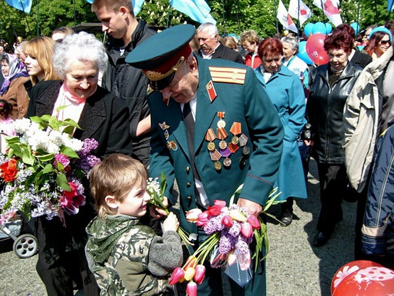 Естественно, в этот праздничный майский день все внимание направлено и приковано к ветеранам ВОВ. К сожалению, с каждым годом их становиться все меньше и меньше, поэтому уделяйте время им не только на 9 мая, но и просто, без повода, они очень ценят ваше внимание. Обязательно подарите участнику ВОВ цветы, это выразит ваше уважение.