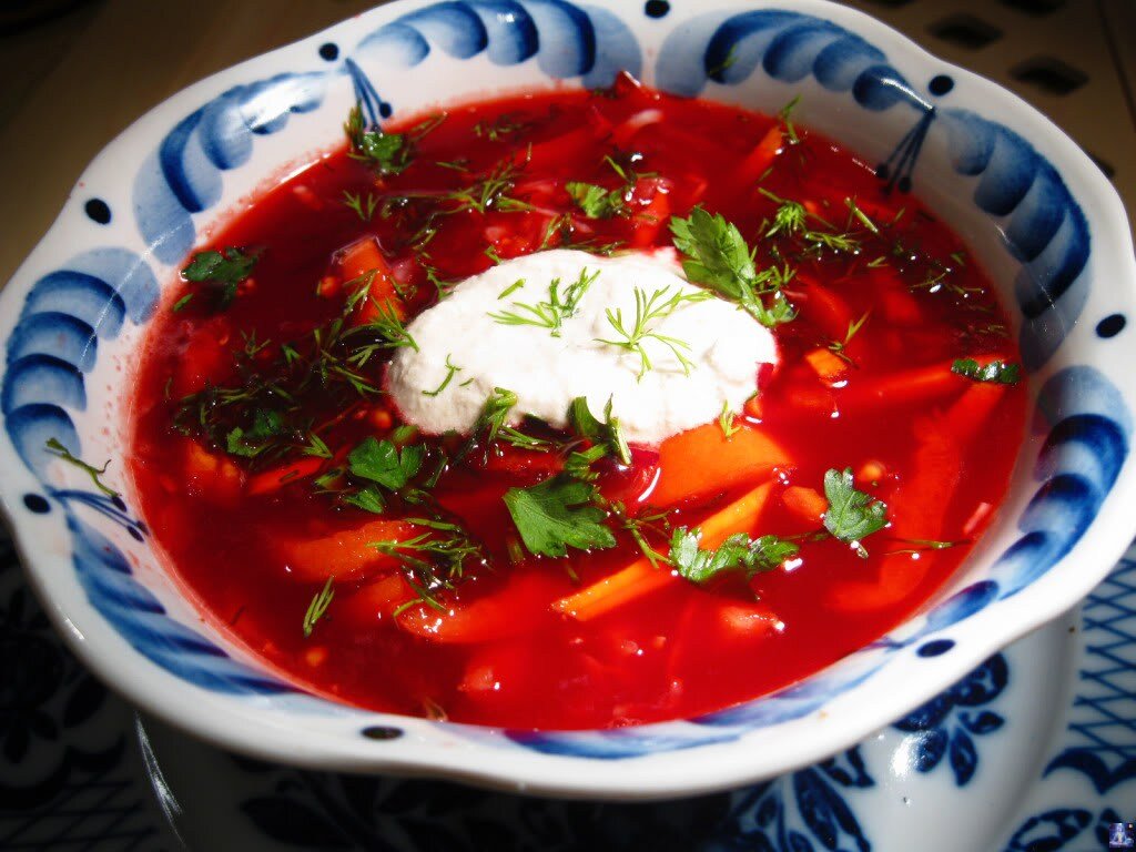 Одно время, работала я в ресторане, объявили вакансию шеф-повара, так хозяин вел отбор через тест приготовления борща. Ставил у плиты и предлагал приготовить борщ, да, долго кухня работала без шеф-повара. Принято считать борщ сложным блюдом, однако, секреты борща мне известны, не даром я получила вакансию в ресторане, но сейчас говорим о борще. Видов борща я знаю немного, примерно 20, среди них обычный русский борщ, украинский, литовский, полтавский, черниговский, волынский, московский, сибирский и другие. У них разные закладки продуктов, но объединяет их один компонент – свекла, она и создает аромат и цвет борща. Сегодня расскажу, как я готовлю борщ обычный, русский, с капустой и картофелем. Количество ингредиентов дам из сборника рецептур, а вот технология приготовления моя, авторская. Борщ с капустой и картофелем. Дано в граммах, на общий выход 1 килограмм. · Кости для бульона 500 · Картофель очищенный 8