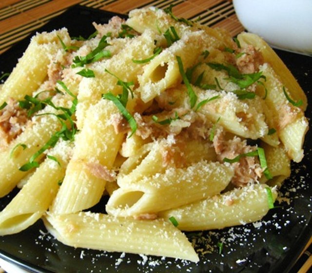 Не всегда есть время и желание стоять пару часов после работы у плиты и готовить ужин.Я хочу поделиться с Вами прекрасным рецептом,который поможет быстро и вкусно накормить Вашу семью ужином.Для этого нам потребуется: 1 банка консервированного тунца в масле,300 грамм макаронных изделий,лук,растительное масло,соль,перец и зелень по вкусу.Макароны отварить до готовности.Лук покрошить и обжарить на растительном масле.Добавить тунца и перемешать.Добавить макароны,посолить,поперчить и перемешать.При подаче украсить зеленью.Приятного аппетита!