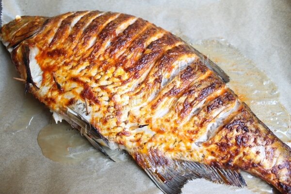 Лещ – рыба, отличающаяся отменными вкусовыми качествами. Особенно хорош он в запеченном виде. При этом, его можно фаршировать, используя как «классическую» в русской кулинарии гречневую кашу с различными добавками, так и другие наполнители. А можно обойтись и без фаршировки. В любом случае, рыба послужит украшением любого стола: и будничного, и праздничного. Вот два простых рецепта. (Разумеется, мы подразумеваем, что лещ уже «подготовлен»: очищен от чешуи, плавников, у него удалены жабры, он вымыт и обсушен). № 1. Рецепт леща, запеченного в духовке с гречневой кашей и грибами. Вам понадобится: Примечание: перед готовкой следует нанести на бока леща длинные и частые косые надрезы острым ножом, чтобы перерубить мелкие косточки, тогда они практически полностью растворятся при тепловой обработке, и не будут мешать. Подготовленную тушку леща следует натереть смесью соли и перца (снаружи и изнутри), сбрызнуть лимонным соком и оставить мариноваться, пока будет готовиться начинка. Мелко поруб