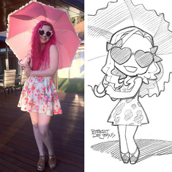 Каждый человек может послужить прообразом для создания мультипликационного персонажа. Для этого нужно всего лишь прислать свою фотографию американскому художнику Rober DeJesus - он принимает заказы по электронной почте, а затем рисует для обратившихся портреты в стиле аниме. Портреты, которые Rober DeJesus рисует по фото. Портреты в стиле аниме по фотографиям. У Rober DeJesus есть ряд требований к присылаемым фотографиям, которые стоит внимательно изучить, чтобы не получить отказ. Например, автор охотно включит в рисунок домашнего питомца - но лишь в том случае, если он всего один. В противном случае, заказ отправится в корзину.