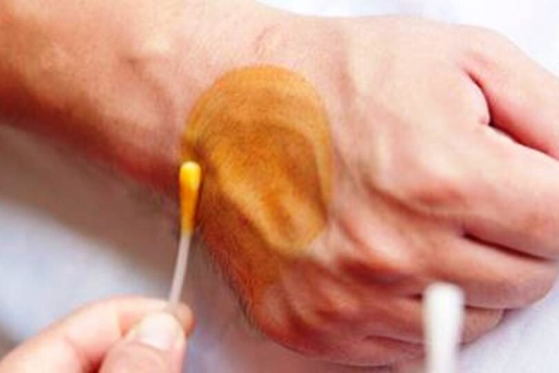 Гипотериоз (пониженная функция щитовидной железы) — далеко не безобидная штучка… Хотя йод стараются добавлять и в соль, и в различные сухие завтраки, и детские смеси, но этого мало! Начнем с пробы — перед сном проведите йодом три полоски — 10см — на внешней стороне правой руки — предплечье. Первая полоска — самая сильная по интенсивности цвета, вторая — слабее, третья самая слабая.