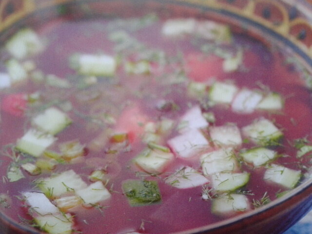 Начинается дачный сезон - и очень скоро Вам может пригодиться рецепт этот легкого и полезного супчика из молодой свеклы ( название от слова "ботва"). Записывайте или запоминайте рецепт, он несложный. Ингредиенты: 2 крупные молодые свёклы с ботвой 0,5 лимона 3-4 горошины душистого перца 1 ч.л. сахара 2-3 картофелины 1 яйцо 5 небольших редисок 2 средних свежих огурца 1 ч.л. горчицы 2 ст.л. сметаны 1 пучок зеленого лука свежая зелень укропа и петрушки 1. Свеклу моем, отрезаем ботву и ненадолго ее откладываем. Далее готовим отвар: очищенную и нарезанную кубиками свёклу опускаем в кипящую воду с добавлением лимонного сока, душистого перца, соли, сахара. 2.Через 15 минут от начала варки свеклы добавляем нарезанную ботву и варим еще 5 минут, далее отвар остужаем и процеживаем. 3. Еще нам нужно отдельно отварить картофель и яйцо. Затем охладить и нарезать кубиками. Помытые редис и огурцы также нарезаем кубиками. 4. В отдельном посуде растираем горчицу с солью и мелко нарезанной зеленью. 5. С