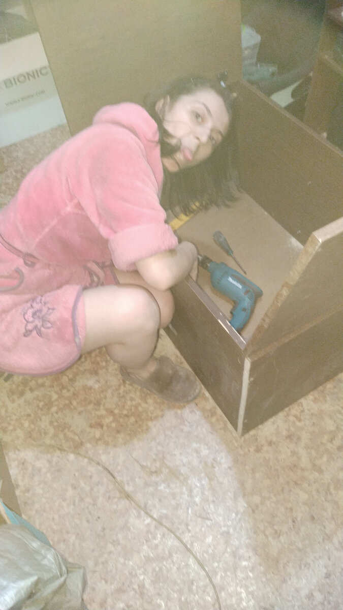 Всем привет! Соскучились? И так, приключения бешеной бабы с электропилой продолжается! Как все знают, аппетит приходит во время еды, и вот, ходила неделю вокруг да около шкафов, которые мешаются в комнате, думала что с ними делать… Потом муж припер с работы узкую 35*60 стиралку, а нашу 60*60 отволок туда, теперь в ванной стала просторное, но на узкую стиралку бельевая корзина уже не помещается, вот и пришла в голову, почему бы не сделать шкаф над стиралкой, где будут храниться полотенца и карзина с бельем?! С нетерпением пережила праздник, ну ради приличия, чтоб не шуметь, и вот сегодня, предварительно позвонив мужу и взяв с него добро, начала пилить шкаф! Частично помогал сын, ну там поднять-поставить, подержать-подправить… Значит, от шкафа сначала отделила оргалит, потом спилила нужную часть высотой 600мм, который для "нового" шкафа будет шириной. Спилив все лишние части, края обработала наждачкой и все скрепила между собой евровинтами. Пригвоздила оргалит и спилила лишне