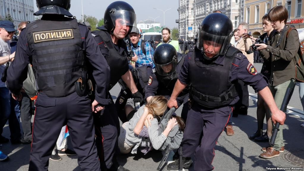 МОСКВА. Российский лидер оппозиции Алексей Навальный и сотни других протестующих были задержаны полицией на несанкционированной демонстрации 5 мая в Москве, в рамках общенациональной серии акций протеста, организованной Навальным перед инаугурацией президента Владимира Путина на четвертый президентский срок. Навальный был взят под стражу вскоре после прибытия на митинг на Пушкинской площади в центре российской столицы, где сотрудники ОМОНа вывозили других демонстрантов, а некоторые избивали пропутинские бдительности. союзник Навального союзник Илья Яшин сообщил информационному агентству «Интерфакс», что Навально обвинили в административном правонарушении повиновения полицейскому. Он мог прибывать до 15 дней в тюрьме. По данным независимой полицейской группы OVD-Info, около 1612 человек были задержаны в 26 городах по всей стране в связи с митингом. Только в Москве число задержанных составляло 703 человека. Еще 233 протестующих были также задержаны в Санкт-Петербурге. Московская по