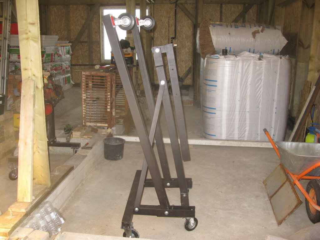 дратути, сограждане! как обещал на прошлой неделе, выкладываю полуфабрикат (на 90%) готового изделия. как и кантователь, ЭТО тоже сделано из металлолома, который заботливо мне притараканил мой сосед. к сожалению не могу найти фото процесса (может их и вообще не делал), по-этому выложу то, что нашлось + сегодняшнее. изделие полностью разборное и при долгой НЕэксплуатации может компактно быть сложено за домом/гаражом или развешено на крючья, заколбашенные к стене того же гаража (чтобы под ногами не валялось). данный экземпляр родился из-за необходимости замены дрыгателя на своем Членовозе. доверять рукожопым сервисменам и тем более ОФФициалам (боже упаси!) — не мой метод.просить у кого-то — тоже не вариант.во-первых я сторонник того, чтобы все иметь своё, а во-вторых — не известно на какой срок оно у меня "зависнет". по-этому я решил "родить" своего "гуся".машин у меня много и всем им что-то нужно. итак, фтричяйте! изделие в сборе из-за того, что я не нашел в продаже длинный (высокий)