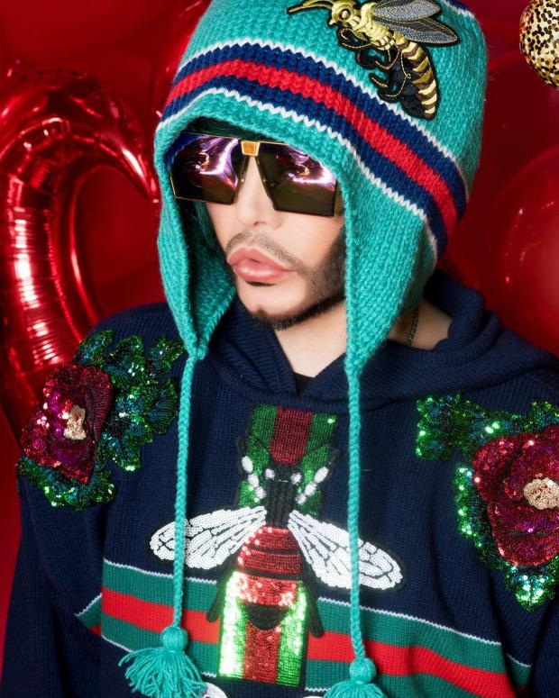 Знаменитый парикмахер, в очередь к которому выстраиваются все российские и не только звезды эстрады и кино, на этот раз превзошел сам себя. Леопардовые лосины, блестящий фиолетовый пиджак и в тон к нему сапоги ботфорды, ярко-розовая рубашка с сияющим зеленым жабо, в тон к рубашке стилист выбрал яркий розовый парик. Ну и, конечно же, все это великолепие увенчала огромная корона, усыпанная разноцветными камнями.