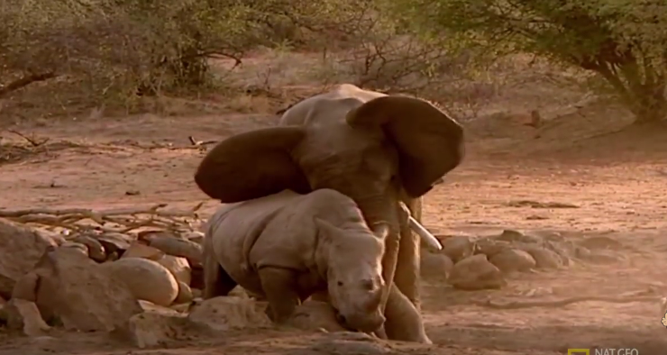 Сегодня я покажу в ролике битву носорога против слона и других животных. Носорогов в Африке зовут - "чукуру" и разделяют на два вида. Белый носорог ("мучочо" и "кобаоба") после слона это самое крупное млекопитающее весом в 2300-3600 кг. и черный носорог ("бореле" и "кейтлоа").Этих зверей осталось так мало, что далеко не каждому ученому удается увидеть все разновидности. Носороги, к сожалению, постепенно вырождаются, из-за кровного родства, редких родов (один раз в 2-4 года) и не постоянной на них охоты браконьеров и охотников. Что касается еды, то в этом отношении неприхотливость носорога не уступит известной неприхотливости верблюда-он охотно ест сухие колючки, усаженные иглами ветки колючих мимоз, камыш, сучья, иногда достигающие 2 дюймов в поперечнике, корни деревьев и тому подобные деликатесы. Все это поедается животным в огромном количестве, едва пережевывается и глотается вместе с землей и камнями, хотя носорог, своим пальцеобразным хоботком на губе, мог бы и получше очищать сво