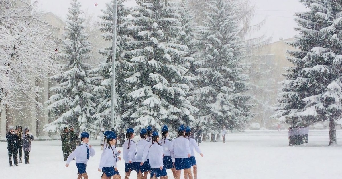 Строевая по сугробам. На Урале школьницы в летней обуви маршировали в снегопад