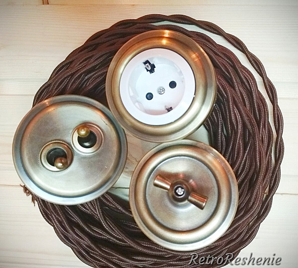 Всем доброго времени суток! Новинка: выключатели и розетки в стиле Лофт в металлическом корпусе. Отличный дизайн и надежные механизмы и простота конструкции – всё, что должно присутствовать в каждом электротехническом изделии, это все можно сказать и про наши розетки и выключатели из металла. Внешне они выглядят так: Тумблерный двухклавишный Бронзовая розетка с белой вставкой выключатель Рассмотрим же теперь и то, из чего состоят наши металлические розетки и выключатели. Это в первую очередь корпус из металла, механизм выключателя или розетки и пластиковая подъёмная рамка, которая выполняет ещё и функцию диэлектрической пластины, что делает металлические розетки и выключатели безопасными в использовании. Выключатель в разборе Розетка в разборе Данные образцы отлично сочетаются с представленной в магазине ретро проводкой, а также с латунными трубами, которые также можно заказать . Вот так вкратце постарались рассказать вам о новинках.