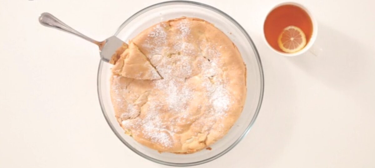 Сверху выкладываем наши порезанные яблоки Сверху покрываем яблоки остатками нашего теста 5.Запекаем шарлотку. Запекаем Шарлотку в духовке при температуре 180 градусов 25-30 мин Такая Шарлотка готовится быстро и получается очень вкусной и пышной. Источник: https://cook.uaset.com