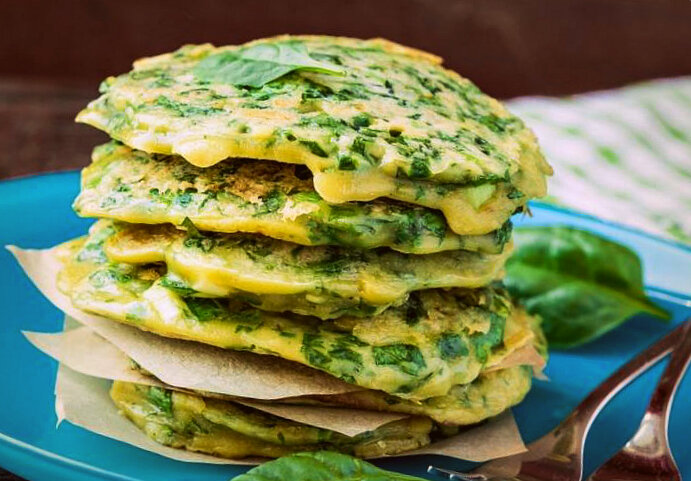 Яйца взбить и добавить к шпинату. Муку и поленту всыпаем туда же, добавляем творог и соль,даем настояться минут 10-15.