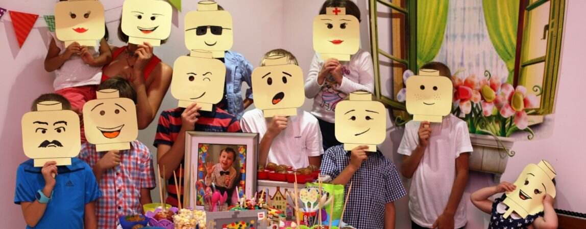 Следующий день рождения был обречен на LEGO-стилизацию. Все прочие звёзды к тому моменту померкли в глазах подросшего сына. И снова украшения и угощения подверглись строгому отбору: только кубики, только минифигуруки! Помня о любви ребенка к мастике, научилась готовить ее сама. Домашний торт был покрыт съедобными детальками, а свечи держали в руках настоящие лего-человечки. Из самого конструктора именинник загодя построил предметы сервировки: салфетницу, стаканчик для столовых приборов и соломинок. Прочую посуду декорировали наклейками с разными персонажами лего-вселенной. Пришлось искать изображения в интернете, верстать макеты, печатать их в типографии. Здесь же нам изготовили тематические флажки и фоторамку для сладкого столика.