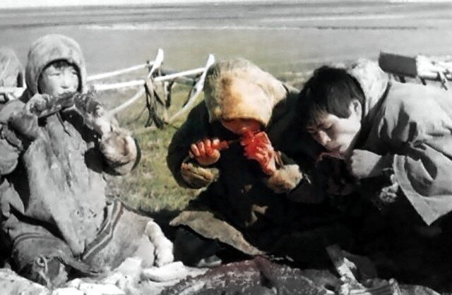 Многим может показаться, что здесь нечего есть, одни снега и дикие звери, нет фаст-фуда и ресторанов, но жители Крайнего Севера смогут удивить каждого. Если они сумели выжить в таких суровых условиях, значит ели что-то очень полезное и, наверное, вкусное. У них крепкий иммунитет, никакого авитаминоза и проблем с кожей, не говоря уже о психическом здоровье. Так в чем же секрет? Понятно, что магазинов в тундре маловато, да и огород не заведешь, поэтому в рацион обычно входили продукты, которые можно поймать, собрать или заколоть. Рыба Рыбу чаще всего вообще не готовили, а ели в сыром виде, замораживали и строгали тонкими ломтиками. Иногда кидали в золу или солили. Но самый надежный способ приготовления - это сушка. И долго хранится, и делать ничего не нужно и полезна. А рыбы в северных водоемах хватает: лосось, семга, хариус, омуль, форель, в общем самая дорогая и вкусная:) Мясо Мясные продукты получали конечно же из оленя. Ели все, и рога, и копыта, и мозги и даже пили свежую кровь, е