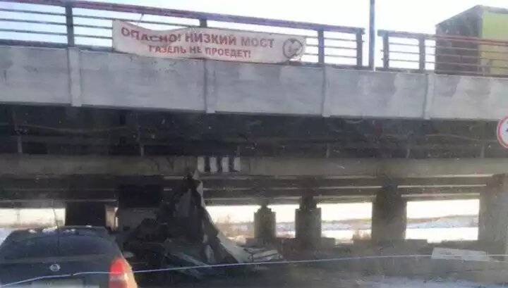 Под известным уже на всю страну "Мостом глупости" в Петербурге, на пересечении Софийской улицы и Ленсоветовской дороги, продолжают врезаться в опоры "Газели". На днях установлен очередной рекорд: 147-я машина застряла под путепроводом, над которым висит растяжка с крупными буквами": "Газель" не проедет!" Городские чиновники решили предпринять дополнительные меры, чтобы привлечь внимание водителей к низкому мосту. В частности, предполагается покрыть его светоотражающей краской, чтобы водители уж точно видели все рейки. Возможно, это остановит их от искушения попытаться тут "протиснуться". Кроме того, как сообщили РИА Новости в городском комитете по развитию транспортной инфраструктуры (КРТИ), перед путепроводом установлены дополнительные информационные щиты, призывающие обратить внимание на допустимые габариты транспортных средств. Фото одного из таких щитов уже опубликовано в "Твиттере" этого знаменитого петербургского моста. Впрочем, судя по соседним твитам, "мост глупости" в Петербу