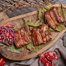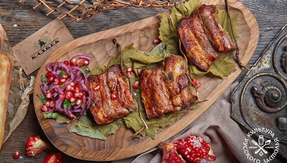 Свиные ребра на мангале Свиные ребра можно запекать на углях двумя способами: целиком или нарезать их кусочками. От себя добавлю, что самый удачный вариант — нарезать их поочередно: два ребра — одно -два-одно… Разрез идет вдоль кости. Когда нарежете, поймете почему, нет — напишите мне и спросите. Свиные ребра на мангале Ресторан Казбек