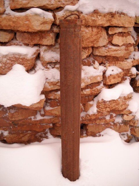 1. Загадочный тубус немецкого происхождения. Внешне напоминает тубус от противогаза, только вытянутый в несколько раз и меньше диаметром. Как версии рассматриваются: укупорка от подрывного заряда ("бангалорская торпеда"), укупорка от другого боеприпаса, тубус для переноса тактических обозначений (флагов). Размеры: длина 102 см, диаметр около 10-11 см. Продается в сувенирном киоске за 800 руб.