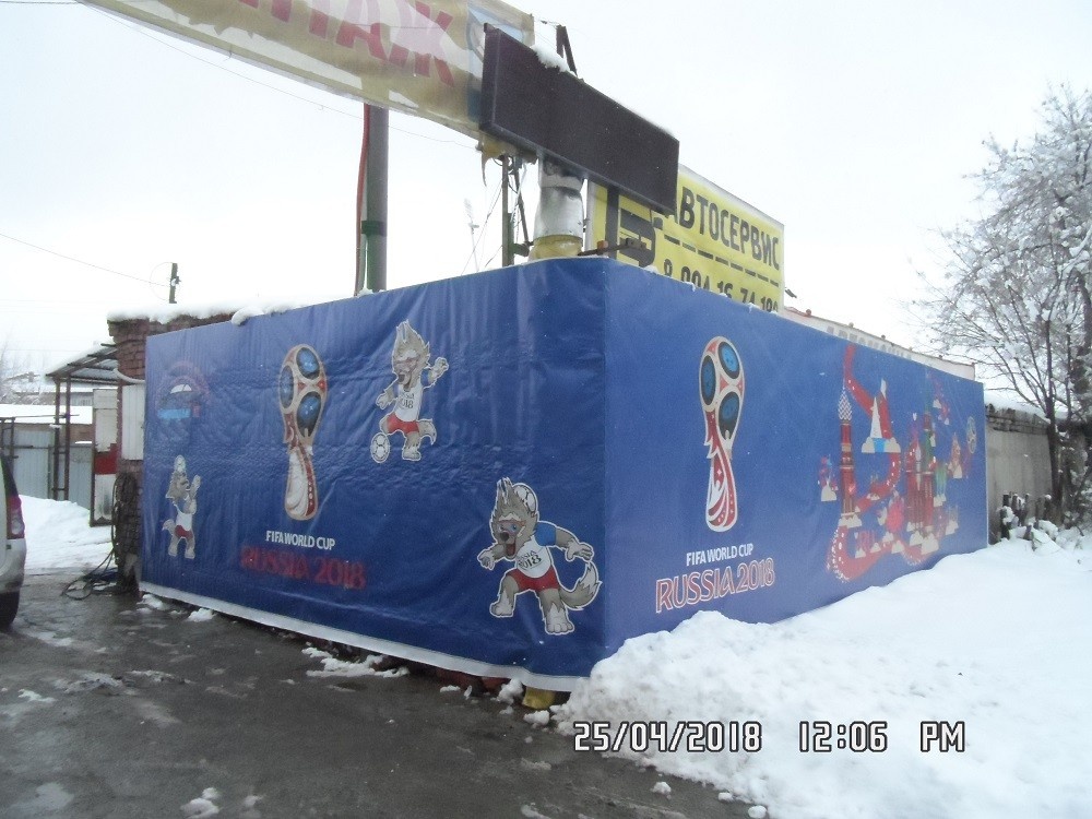 Обратились по телефону граждане, которые поинтересовались правомерностью размещения рекламного баннера с символикой предстоящего Чемпионата Мира по футболу, матчи которого состоятся и у нас в Екатеринбурге, на фасаде автосервиса на моем квартале...