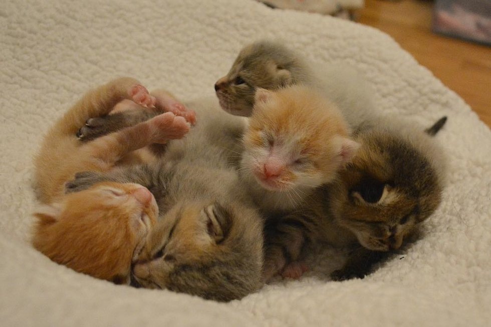 Красивую пятнистую кошку Матильду отдали в приют прежние хозяева лишь из-за того, что та забеременела. Приют тут же принялся вывешивать объявления о будущей маме, которая попала в сложную ситуацию и потеряла кров, в надежде успешно раздать котят. Новость о матери-одиночке увидела девушка Кайли, которая прониклась историей, что решила забрать Матильду к себе домой, где уже жила собака Сьюзи. В первый день, Матильда была совсем застенчивой. Молодая кошка очень переживала, будто предчувствуя роды, пряталась под столом. На второй день, поняв, что она в безопасности, кошка вышла из укрытия и показала всем свой круглый живот. В воскресное утро, Кайли шла проведать Матильду, которая уже была не одна. Она родила пятерых очаровательных котят, которые получили имена - Медок, Майкл, Брюс, Магнус и Лаванда. Собака Сьюзи всё чувствовала и ждала встречи с малышами. « Она услышала плач котят, очень разволновалась и отчаянно хотела их увидеть, - рассказывает Кайли, - я приоткрыла ей дверь, чтоб