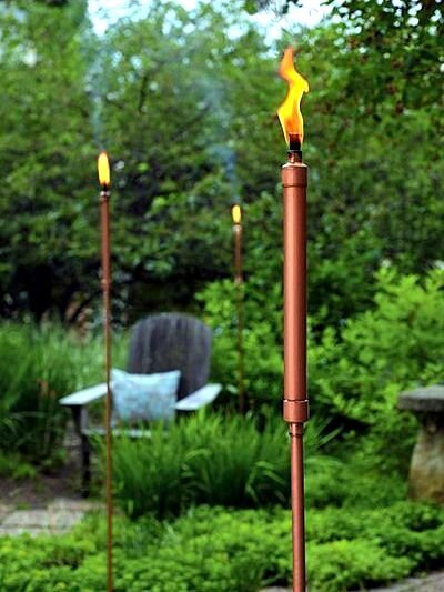 Как по мне, так это очень крутая самоделка. Правда, я не вижу смысла ходить и поджигать такие фонари каждый день (кому это надо?), но вот если у вас мероприятие типа шашлычка-пикничка, то можно декорировать участок такими классными светильниками с настоящим живым огнем. Заправлять лучше всего маслом, обычным растительным: хватает надолго, стоит недорого, экологично. Ну и пусть немного коптит - не страшно. Если хотите, можете попробовать спирт, керосин, но они выгорают быстро. Изготовить такой фонарь под силу любому! Я не шучу, всё делается элементарно: берете газовую горелку, припой и паяете эту конструкцию. На один светильник понадобится: Все размеры отмеряются по месту, диаметры трубок по вашему желанию. Просто прямо в магазине посмотрите, чтобы все фитинги входили друг в друга, а вам лишь осталось все нарезать и спаять.