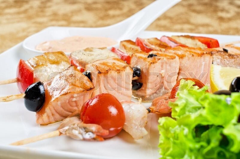 Очень не обычное блюдо получается из креветок и сёмги, а вкус этого блюда просто не передать словами. Гости и домочадцы будут в восторге. Рецепт рассчитан на 6 человек, и в качестве закуски подойдёт не только дома, но и на природе. Игредиенты: Филе сёмги - 800 г. Креветки (королевские) - 400 г. Перец (зелёный чили) - 2 стручка. Лайм - 1 штука. (сок) Базилик (листья) - горсть. Соль - по вкусу. 1. Нарезать филе рыбы на длинные кусочки. (8-10см) 2. Нвтереть имбирь, выжать сок лайма, нарезать мелко перец чили и порубить базилик. 3. Перемешать все ингредиенты вместе. 4. Натереть сёмгу и креветки получившейся смесью и оставить на 30 минут. 5. Сложить пополам кусочки сёмги, и закрепить шпажкой, креветки тоже нанизить на шпажки и жарить 5-10 минут. Готовое блюдо переложить в красивое блюдо и подавать горячим. Приятного аппетита! Понравился рецепт? Подписывайся на канал и ставь класс! Узнавай намного больше рецептов.