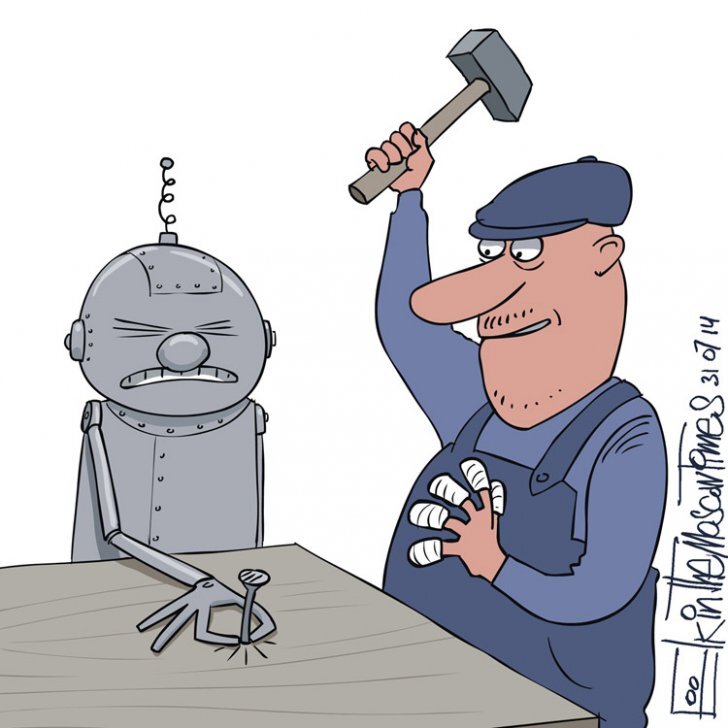 Компьютер не заменит человека, пока не научится сваливать всю работу на другой компьютер. *** Руководитель трамвайного депо запросил из бюджета денег на установку в трамваях спутниковых навигаторов. *** Вставил карточку в банкомат, набрал код, запросил баланс, вышла бумажка со словом ДЕРЖИТЕСЬ. *** Бабушка подралась с внуком, доказывая ему, что мышь — животное, лайки — собаки, а ссылка — это Ленин в Шушенском. *** "Windows" — это слово из диалекта Апачей. В переводе означает "Белый человек, глядящий через стеклянный экран на песочные часы." *** — Что делает сисоп, просыпаясь после дикой пьянки?
