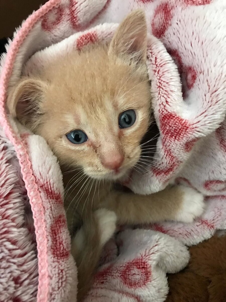 Рыжего котёнка нашли на заднем дворе. Его взял под опеку калифорнийский приют "Королевский Кошкин Дом" и поселил на передержке, чтобы малыш, которого назвали Макарони, лучше чувствовал себя в доме. "Макарони плакал, когда мы брали его и пытались погладить. Он никогда не мурлыкал и предпочитал сидеть один в своей клетке. Это разбивало мне сердце", - рассказывает Лейси, его временная мама. Лейси и её семья по очереди проводили время с малышом, стараясь его утешить. Они обнимали его, гладили и любили, чтобы он чувствовал себя в безопасности. Но несмотря на все усилия, крохе чего-то не хватало. Тогда Лейси связалась с "Королевским Кошкиным Домом" и спросила, нет ли у них еще одного котенка на передержку. "Я сказала, что Макарони нужен братик. Так получилось, что недавно мусорщик как раз нашел другого рыжего котенка, который мяукал, сидя в мусоре", - рассказывает женщина. Спасатели сразу поняли, что малыш станет идеальным братиком для Макарони, ведь они были ровесниками. На следующий де