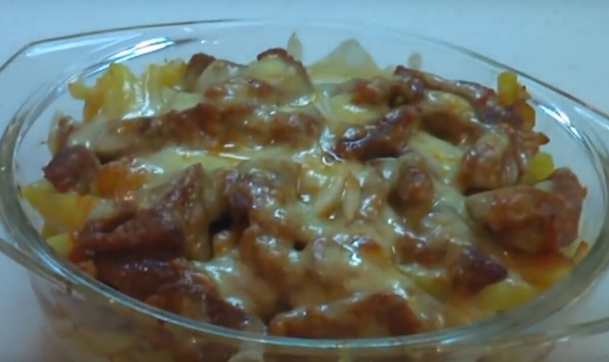 Вам понадобится: Мясо нарезаем кусочками и жарим на сковороде После того как мясо потеряет красный цвет добавьте порезанный лук Затем добавьте в мясо столовую ложку томатной пасты Параллельно, пока жарится мясо, вы можете приготовить картофель. Для этого его нужно почистить и нарезать. Картофель выкладываем на сковороду и жарим до готовности. Готовим нашу заливку. Для этого взбиваем яйца с молоком. Наше блюдо почти готово. Осталось только выложить наши ингредиенты в блюдо для запекания. Класть картофель и мясо нужно слоями. Слой картофеля, слой мяса. Заливаем все смесью из яиц и молока В самом конце посыпаем сверху тертым сыром Убираем блюдо в духовку и готовим 30 мин Запеканка получается очень вкусной, а приготовить ее сможет каждый. Узнай больше рецептов на https://cook.uaset.com