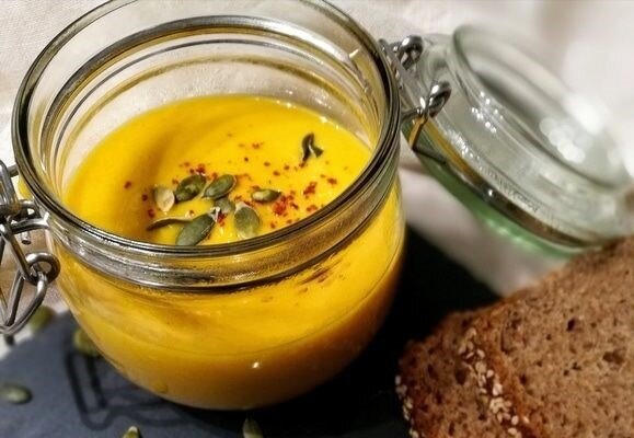 Итак, еще один суп из тыквы:) Фруктовую нотку получает суп от добавления апельсинового сока, пикантность придает имбирь и намек на чили. Вместе — идеальная комбинация. Лично мне очень нравится тыква бутернут. Она имеет приятный сладковатый вкус. А нежную текстуру суп приобретает от шелковистого картофеля и порея. Комфортное согревание в такую холодную весну в этом году, и здоровое питание. Прошу! Для приготовления понадобится: тыква........................................................... 1000 г лук порей...................................................... 1 шт имбирь...................................................... 1 кусок картофель.................................................. 2 шт овощной бульон...................................... 500 мл апельсиновый сок................................... 200 мл молоко...................................................... 300 мл паприка красная молотая...................... 1 ч. л. карри.............................................