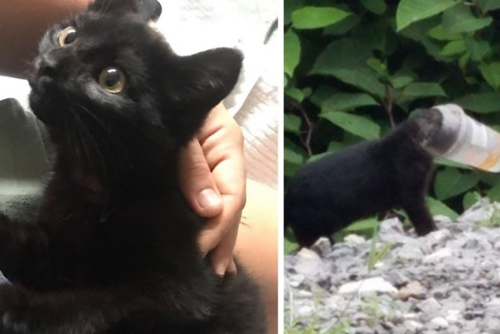 Котенок с головой, застрявшей в пластиковой чашке, помог спасти всю свою семью