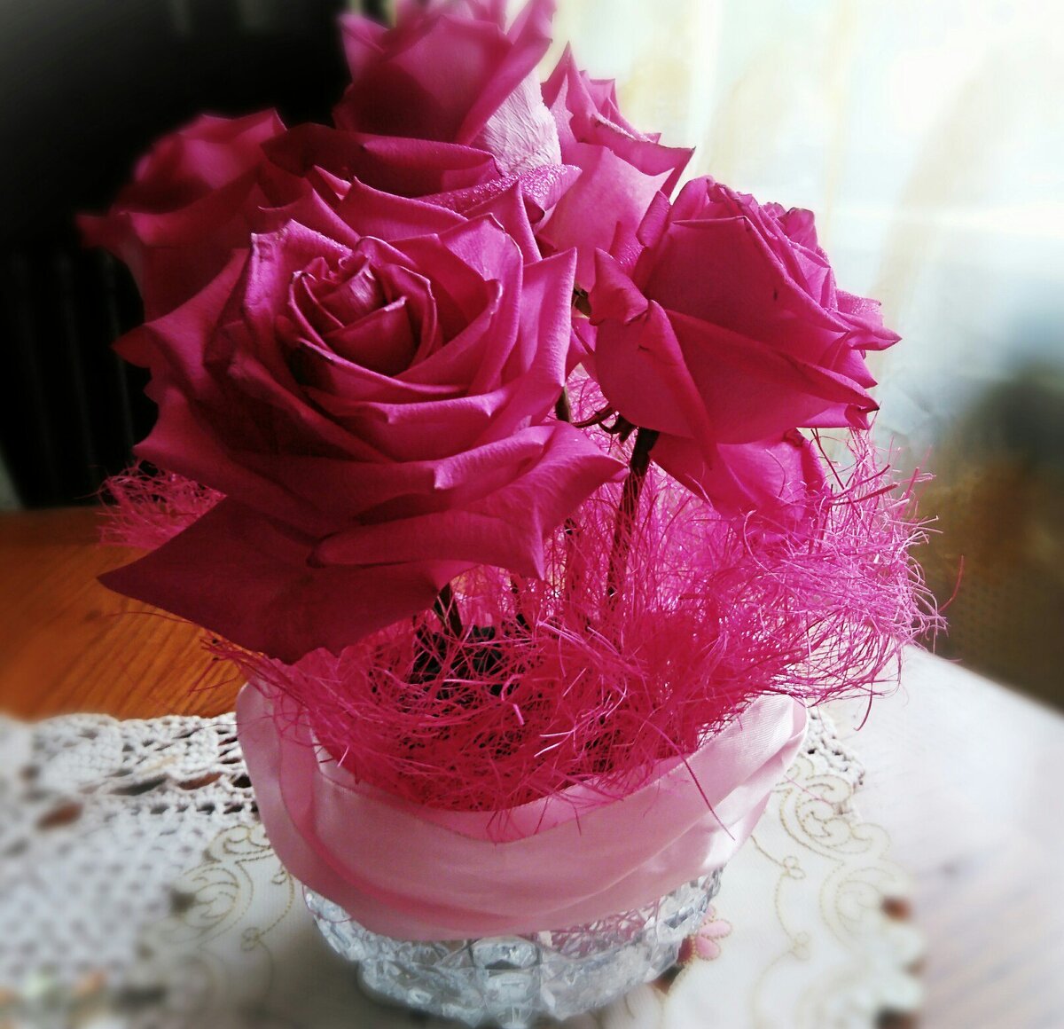 Шел "минус-сто-двадцать-седьмой" день до дембеля. Вечером вчерашнего дня я обнаружила, что дивный розовый букет (преподнесенный мужем в лучших традициях романтиков - без особого повода) принялся грустно наклонять бошки, и вообще нацелился в утиль.