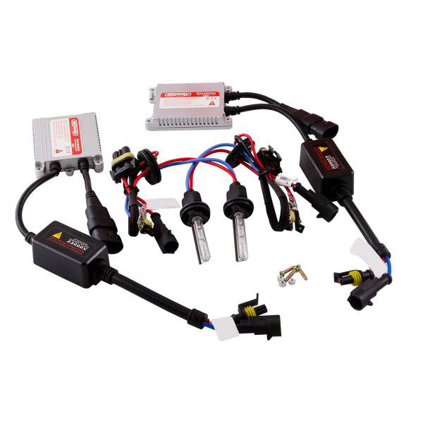 Система освещения с ксеноновыми лампами состоит из: Непосредственно самих ксеноновых ламп, блоков розжига высокого напряжения, блоков переключения ближнего-дальнего света (би ксенон) и электропроводов. Ксеноновая лампа отличается от обычных ламп накала, в ксеноновой лампе нет никаких спиралей накала, в специальной колбе лампы между двумя электродами находится благородный инертный газ - ксенон. Когда на электродах появляется высокое напряжение, то в колбе лампы между электродами начинает протекать переменный ток, в следствии чего создаётся свечение инертного газа. В отличие от ламп накаливания, ксеноновые лампы не нагреваются д