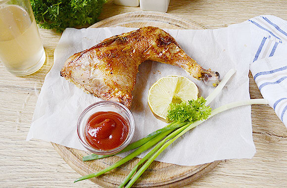 Приготовить курицу в духовке может всякий, однако запечь птицу исключительно вкусно получится не у каждого. Сегодня хотим поделиться рецептом аппетитных и необычайно вкусных куриных окорочков, которые запечем в духовке на соли. Никогда не пробовали такой способ готовки? Тогда самое время начать. Сразу предотвратим вопросы и скажем, что несмотря на соляную подложку, курица получается очень сочной и нежной, мясо не пересаливается, а берет ровно столько, сколько нужно. Заметьте, что таким образом можно приготовить и курицу целиком, хотя в этом случае время готовки увеличится примерно до часа. Ингредиенты: Куриные окорочка – 3 шт.; Майонез – 3 ст. л.; Кетчуп – 2 ст. л.; Специи – по вкусу; Соль – 0,5 пачки. Рецепт: Займемся курицей. Мясо самым тщательным образом помыть, удалить лишний жир и обсушить бумажными полотенцами. Приготовим маринад: соединим майонез и кетчуп, добавим специи и немного соли. Вы можете использовать смесь специй для курицы, а можете выбрать свои любимые. С кур