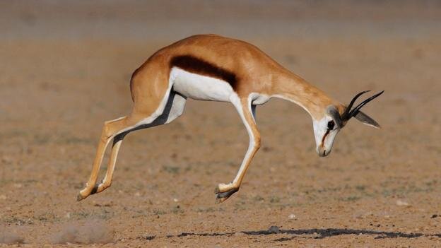 Одним из таких видов является пружинный бот, антилопа среднего размера, обнаруженная в южной части Африки. На них охотятся большие кошки, орлы и дикие собаки, эти животные часто прыгают в целях безопасности.