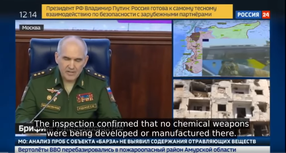 На видео Брифинга, которое на западе предпочитают игнорировать, показанного по российскому ТВ еще 14 апреля, который провел официальный представитель Генерального штаба России генерал-полковник Сергей Рудской, показаны неразорвавшиеся ракеты и прочее и т.д. и т.п.(см. Видео, оно на русском). Ролик называется -Россия демонстрирует части американских ракет, сбитых над Сирией, две Неразорвавшиеся, доставленные в Москву.