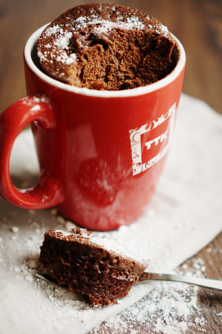 Смазываем маслом кружку,выливаем туда смесь и ставим примерно на 90 секунд на высокий режим. Главное не передержать! :)
