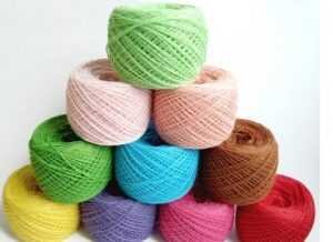 Хлопок. Нитки из этого материала хорошо проводят воздух, в них телу прохладно, однако они не достаточно эластичны. А это значит, решив вязать из этих ниток спицами, определите, насколько сильно они скручены. Если достаточно сильно (как, например, «Ирис»), то данными нитками лучше вязать крючком. Ведь для спиц нужна слабо скрученная, мягкая пряжа. Зачастую к хлопку в таком случае добавляют шерсть (либо акрил), чтобы она стала более эластичной и толстой; продают в таких же мотках, как обычную пряжу для спиц, а не клубками. Выпускаются и хлопковые нитки-мулине для вышивания. Такие мотки намного короче тех, что предназначены для вязания спицами – всего 8-20 метров.