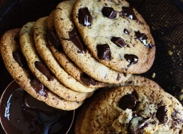 Нам потребуется: 115 г размягченного несоленого сливочного масла 200 г сахарной пудры 20 г меда 1 яйцо 2 ч. ложки ванильного экстракта 200 г пшеничной муки 1/2 ч. ложки пищевой соды 150 г молочного или темного шоколада, нарезанного небольшими кубиками Приготовление: 1. Взбиваем масло, сахарную пудру и мед до однородной массы. Добавляем яйцо и ваниль и взбиваем, пока они не станут легкими и пушистыми. Затем добавляем муку и пищевую соду и равномерно смешиваем, после чего добавляем и перемешиваем шоколад. 2. Делаем шарики примерно 30 граммов каждый, затем слегка их выравниваем и кладем на противень, выложенный пекарской бумагой. Шарики увеличиваются более чем в два раза по ширине во время выпечки, поэтому оставляем между ними много места на противне. При желании можно вдавливать лишние куски шоколада на поверхность каждого из шариков. 3. Разогреваем духовку до 200 °C (при вентиляции 160 °C) и печем примерно 15 минут, пока печенья не станут сочными и покроются золотистой корочкой. Дае