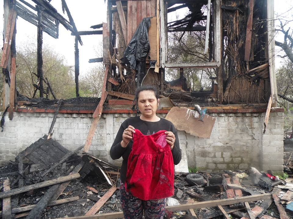 В Киеве на Русановских садах неизвестные сожгли несколько домов, в которых проживали семьи ромов. Об этом в Facebook сообщила пользователь Рита Москалец, отметив, что сотрудники полиции якобы проигнорировали инцидент, который произошел в понедельник, 23 апреля, «А это просто ромалка на фоне своего бывшего дома, с платьем своей двухлетней дочки, которую она чудом спасла от пожара. Ее дом подожгли, когда она и ее двое дочерей находились внутри. Женщина быстро выбежала из дома, оставив все свои деньги и документы, чтобы спасти детей и себя», — рассказала Москалец. По мнению ромов, неизвестные люди занимаются поджогами именно на почве этнической ненависти. Сама же Москалец пишет о предположениях, что «поджоги выгодны «Киевавтодору» для продолжения строительства Подольско-Воскресенского моста». Она добавила, что в результате агрессивных нападений заживо сгорели четыре ребенка. «Вчера меня схватила за руку седовласая ромалка со стеклянными глазами, когда я спросила у нее, где еще бы