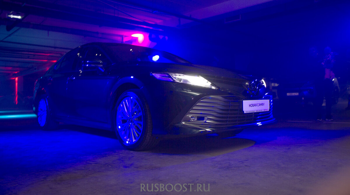 Презентация новых автомобилей, их обновлений для дилеров — праздник и куча хлопот. И о том, что 27 апреля в Кирове будет презентация новой Toyota Camry не знал только далёкий от автомобильного мира человек. Только за последний день я слышал, что на презентацию хотят попасть и конкурирующие маркетологи и просто люди, которым интересно такое мероприятие, но, увы, вход лимитирован приглашениями. В этот раз не пришлось ехать на край Кирова в дилерский центр, праздник было решено провести нестандартно — на закрытом паркинге в бизнес-центре «Кристалл». И это было по-настоящему круто: приглушенный свет, разбитый полосками софитов, потрескивающий винил, кальяны, бармен, исполняющий пожелания всех и каждого и, конечно, же новые машины, сверкающие перламутром в флюоресцентных вспышках. Toyota Camry были представлены в двух вариациях: топ в черном цвете с двигателем V6 и на «полном фарше» с ценником около 2,4 миллиона рублей и средняя комплектация в белом цвете ценой 1,8 миллиона рублей. Го