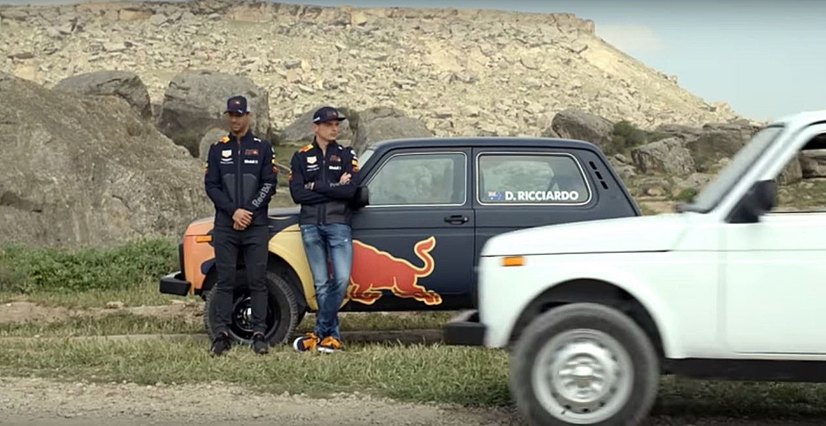 В сети интернет комода Формулы 1 Aston Martin Red Bull Racing разместили видео, в котором приняли участие пилоты Макс Ферстаппен и Даниэль Риккардо в гонке на внедорожнике "НИВА" Lada 4x4 в Азербайджане. Гонка проходила в 60-ти километрах к югу от Баку в заповеднике под названием Гобустан. Сюжет видеоролика, два автомобилиста встречаются с пилотами Red Bull, которые прибыли на Гран-при Азербайджана и договариваются с ними посоревноваться. По словам Ферстаппен: «Мы устроили гонку против местных водителей, которые в отличие от нас прекрасно знают дорогу. Но, к их сожалению, мы оказались чуточку быстрее» По словам Риккардо, автомобиль "Нива" управляется как конфетка, несмотря на то что было несколько страшных и опасных моментов. Читать больше...