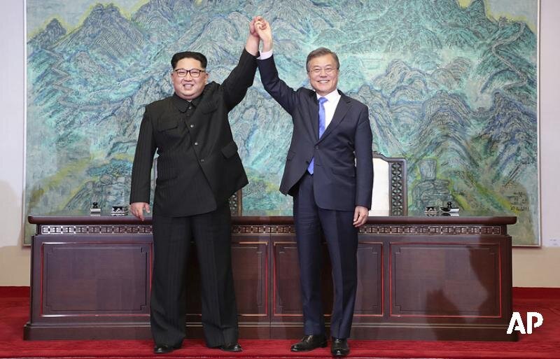 Северокорейский лидер и южнокорейский президент встретились, и договорились уже в этом году официально закончить войну и подписать прочный мир - при участии Соединённых Штатов и Китая.