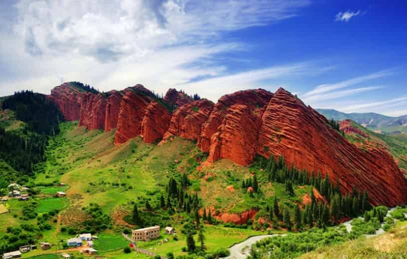 В Кыргызстане на южном берегу Иссык-Куля находится замечательное местечко, очень любимое туристами еще со времен Советского Союза. Это курорт Жеты-Огуз, который расположен в красивейшем природном ландшафте. Колоритные горы Семь быков и Разбитое сердце так же притягивают к себе многочисленных туристов.