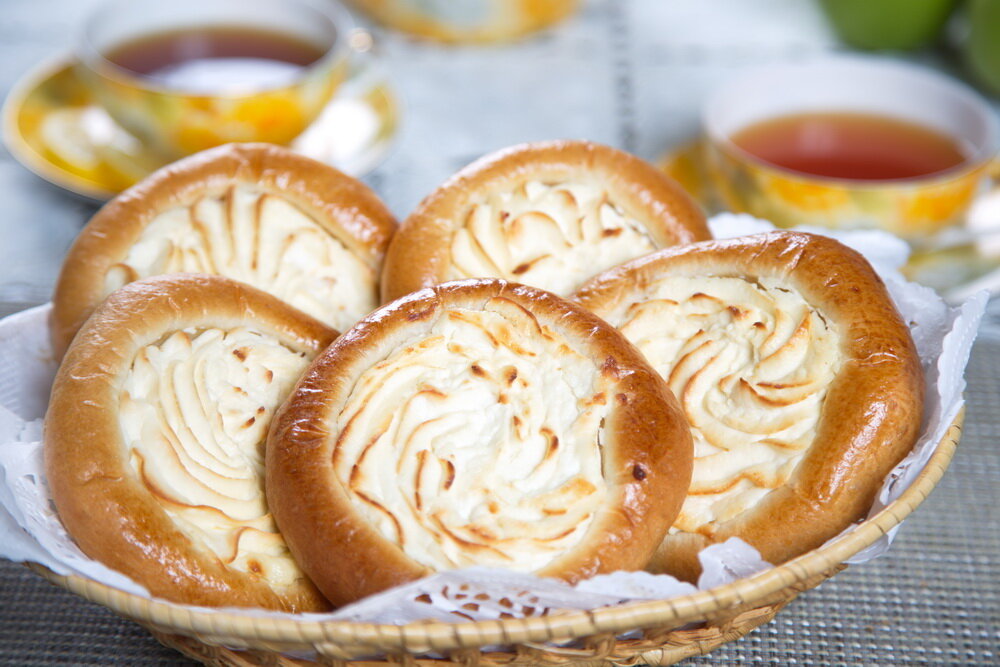 8. Яичный желток развести с водой и смазать им ватрушку. Запекать в духовке 20-25 мин. (до золотистого цвета).