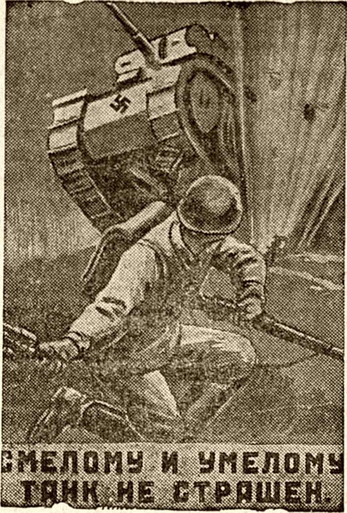 Стремясь сломить сопротивление наших войск, чтобы проникнуть к Москве, фашисты пускают вход все танковые резервы. Наша задача — не допустить врага к Москве, смелее и решительнее уничтожать вражеские танки.
